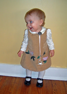 | Lexi is a toddler. A short one who lacks a toddler's share of hair, but a toddler nonetheless. She's into climbing. She loves to climb up on the little table in the playroom and bounce in front of the window. She's learning to climb and play at the park. She can get up stairs in a flash (always fascinating since we don't have any.) She likes to read and chase bubbles and play with Kate. She carries her babies around in a playsilk for a sling. She's using lots of words. She's still very affectionate and friendly. She LOVES to say "hey!" to our neighbors. She'll say "HEY!" and wave and grin and rinse and repeat for minutes at a time. They get a kick out of her. She gets SO excited when daddy gets home from work and runs towards him. She can recognize his car from far away and she starts to dance. She's very into dancing and singing, still. She's a little bundle of joy! |